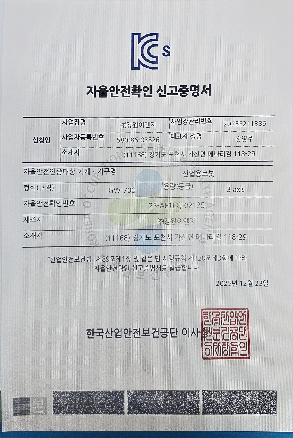 ÀÚÀ²¾ÈÀüÈ®ÀÎ ½Å°íÁõ¸í¼